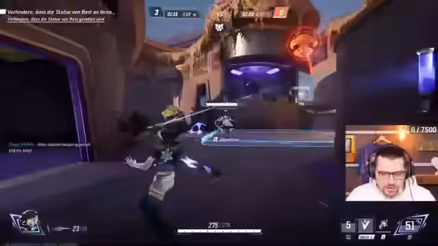 00:50:37Während eines intensiven Matches gelingt es dem Team, einen Punkt mit nur wenigen Sekunden Restzeit zu verteidigen, indem die gegnerischen Ultimates kontert werden. Der Streamer analysiert das Spiel und stellt fest, dass das gegnerische Team besonders gut darin war, einzelne Ziele auszuschalten, während sein Team die Teamfights für sich entscheiden konnte. Er hebt hervor, dass Teamarbeit entscheidend ist.
