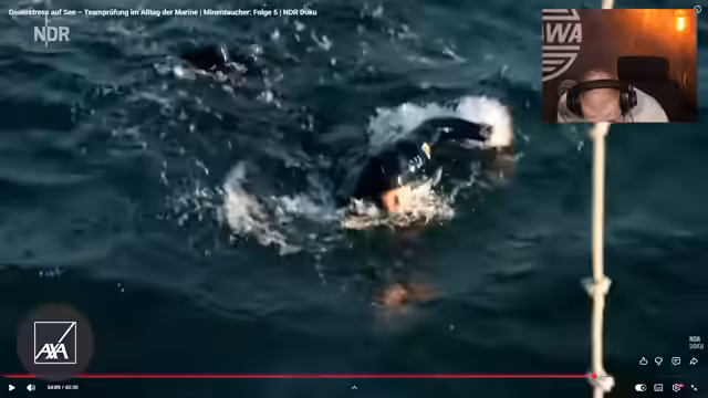 02:24:28Die praktische Durchführung eines Tauchgangs zur Mine suchenden ist ein komplexes und stressiges Unterfangen. Nachdem die Koordinaten einer vermuteten Mine übergeben wurden, muss das Boot diese unter widrigen Bedingungen wie Wellengang und Strömung anpeilen. Die Taucher stürzen sich einzeln ins kalte Wasser und müssen im Team eine Mine auf dem Meeresboden finden und markieren. Dieser simulierte Ernstfall erfordert höchste Konzentration, genaue Kommunikation und ein koordiniertes Vorgehen, um die Aufgabe erfolgreich und gefahrlos abzuschließen.