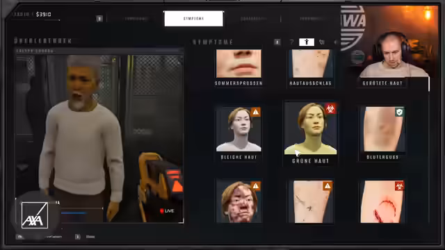 03:07:56Nach der intensiven Dokumentation wechselt der Streamer zum Spiel 'Quarantänezone'. Die Aufgabe besteht darin, in einer postapokalyptischen Umgebung Zivilisten zu scannen, um Infektionen und potentielle Zombie-Befall festzustellen. Jeder Entscheid hat Konsequenzen. Manche Personen werden in die Quarantäne geschickt, andere freigelassen, und im schlimmsten Fall muss man zur Rettung der Gemeinschaft eine Person hinrichten.