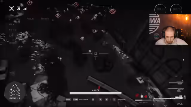 03:02:16Eine extreme Szene zeigt den Kameraden Uwe, der sich verzweifelt am Seil festhält, aber vor Erschöpfung aufgeben muss. Dies führt beim Streamer zu einer starken emotionalen Reaktion. Er beschäftigt sich intensiv mit seiner eigenen Willensstärke und dem Gefühl, sich selbst im Weg zu stehen. Es entsteht ein innerer Kampf, der von Selbstzweifeln und einem starken Willen, nicht aufzugehen, geprägt ist. Er erkennt, dass das Durchhaltevermögen seine eigentliche Stärke ist.