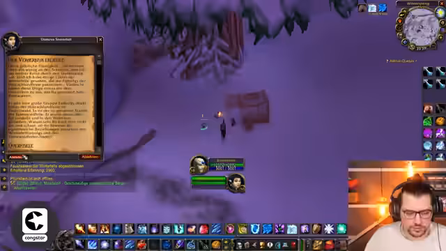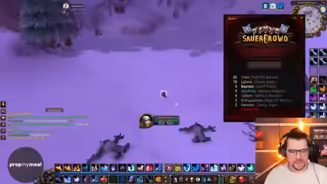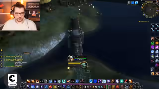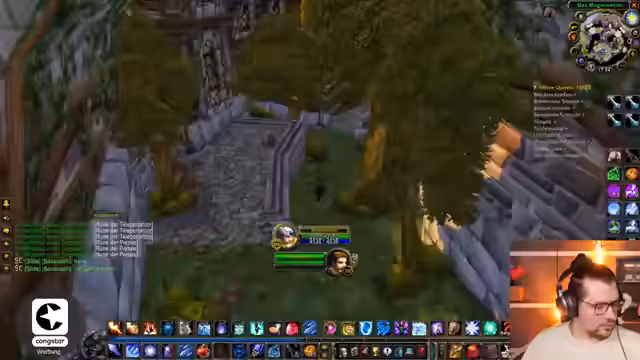 08:50:01Nachdem der Einkauf im Auktionshaus abgeschlossen ist, bereitet der Streamer sich auf das AOE-Farming vor, eine Methode, um durch Massenangriffe auf Gegnern schnell Erfahrungspunkte (EP) zu sammeln. Es wird ein geeigneter Spot gesucht und gefunden, der für die Allianz als ideal gilt, da die Gegner dort neutral sind. Der Streamer plant den Pull der Mobs sorgfältig und spricht über die Cooldowns von Fähigkeiten wie 'Eisbarriere' und 'Blizzard', um den Spot sicher zu farmen.