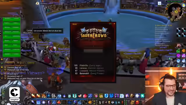 05:57:48Die Vorbereitungen für ein bevorstehendes Casino-Event laufen auf Hochtouren. Der Streamer kümmert sich um die Kleidung der Teilnehmer und erwähnt den Verkauf von Items, wie Ringe für Magier, in der Gildenbank. Die Organisation des Events wird detailliert besprochen, inklusive des Treffpunktes in Ironforge, der Notwendigkeit, alle auf denselben Spiel-Server-Layer zu bringen, und der Einführung eines speziellen Add-ons für den Deathroll-Mechanismus.