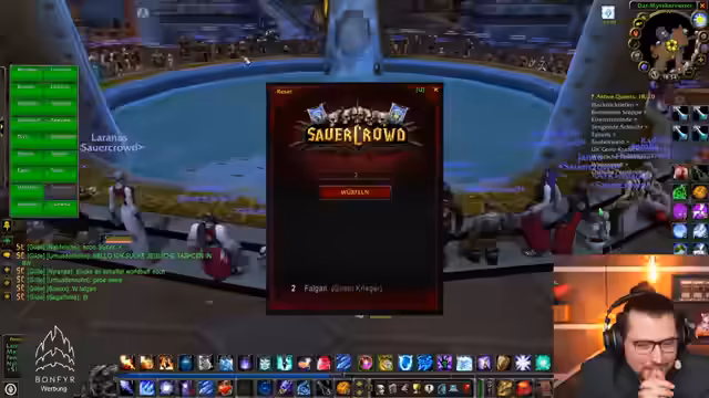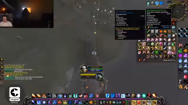 05:47:13Der Streamer spielt Peggle Classic und erreicht mehrere Freeballs sowie hohe Punktzahlen. Der Fokus wechselt anschließend zum Farmen von Items im Spiel. Es wird nach einem Mob mit 10% Dropchance für einen speziellen Gegenstand gesucht. Die Suche gestaltet sich schwierig, da die genauen Spawnorte der benötigten Sukuben unklar sind und technische Probleme auftreten. Schließlich wird ein Event in Ironforge angekündigt, bei dem ohne Tränke gespielt werden soll.