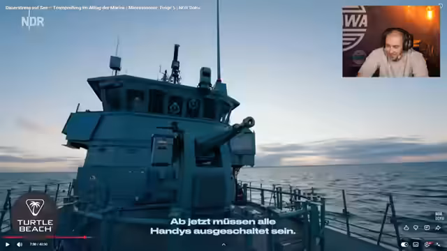 02:38:44Ein sehr schwieriger Tag wurde durch die nun hinzukommende Situation zusätzlich belastet. Der Streamer berichtet, dass ein Kamerad namens Alex möglicherweise ausscheiden könnte, da er den Tag krankheitsbedingt nicht schaffte. Im weiteren Verlauf wird auf die anspruchsvolle Ausbildung bei den Minentauchern eingegangen. Die ersten drei Jahre im Seetrupp beinhalten auch monatelange Einsätze auf See. Streamer äußert, dass dies für eine Person mit Familie eine große Herausforderung darstellt, da es sich um eine Lebenseinstellung handelt, die das gesamte Leben prägt.