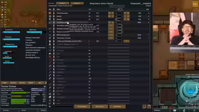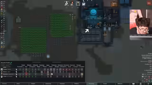 02:51:05Der Streamer beginnt mit einem vollen Seitenhieb auf RimWorld und den Zustand der Kolonie. Ein Kolonist ist schwer verletzt und muss gerettet werden. Der Fokus liegt darauf, Ressourcen wie Schieferblöcke für den Bau von Wänden und Möbeln zu nutzen, während das Problem mit den Rationen und der unzureichenden Ernährung der Kolonisten thematisiert wird. Man erntet und baut unter Zeitdruck, um die kommenden Mechanoiden abzuwehren, und stellt fest, dass die Fähigkeiten der Kolonisten, wie Kochen, Schlachten und Feldarbeit, entscheidend für das Überleben sind.