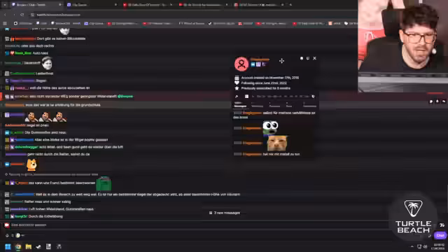 00:20:41Im Anschluss an technische Probleme im Studio erzählt der Streamer eine ausführliche Anekdote über die beschwerliche Beschaffung einer neuen Waschmaschine. Nachdem seine alte Maschine defekt war, kaufte er eine gebrauchte von einer Ex-Partnerin, die jedoch bei der Überprüfung im Kofferraum keine Transportsicherungen aufwies. Mit Hilfe von Jens gelang es ihm, die schwere Maschine nach oben zu schaffen, doch beim Transport verlor die alte Maschine ihre Abdeckung, was zu einer panikartigen Situation führte. Problematisch wurde es auch, als die neue Maschine während des ersten Waschgangs undicht wurde. Nachdem der Streamer bereits total verzweifelt war, stellte sich das Problem als ein nicht wieder eingeschraubtes Flusensieb heraus, das mitgeliefert worden war.