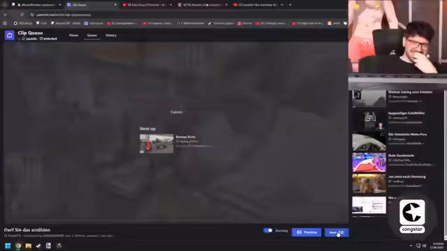 00:45:49Der Streamer widmet sich den bevorstehenden Plänen für die Gamescom. Es gibt eine Herausforderung mit einem geplanten Meet & Greet, das am Sonntag stattfinden soll, an dem jedoch niemand aus seinem Team mehr auf der Messe sein wird. Da die meisten Besucher ebenfalls sonntags nicht mehr anwesend sind, soll eine Alternative geschaffen werden. Geplant ist eine Ankündigung der genauen Standzeiten und Orte, an denen das Team zu treffen ist. Dies soll im Rahmen eines morgigen Briefings kommuniziert werden. Für die Dosenbeats-Party am Samstag wird seine Anwesenheit bestätigt, wo er wahrscheinlich bis mindestens 3 Uhr bleiben wird.