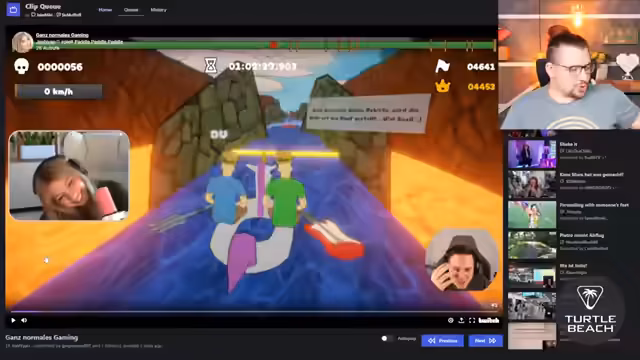 03:00:41Der Streamer führt ein Live-Voting durch, bei dem die Zuschauer stimmen, ob sie sich von einer anderen Person in den Mund spucken lassen würden. Nach über 400 Stimmen zeigt sich ein fast ausgeglichenes Ergebnis mit 49 zu 49 Prozent. Anschließend analysiert er mehrere Clips, darunter einen Betrayal-Moment und einen Gaming-Moment, der potenziell den Award für das Gaming-Moment des Jahres gewinnen könnte. Er bewertet auch Cringe-Momente eines IRL-Streams.