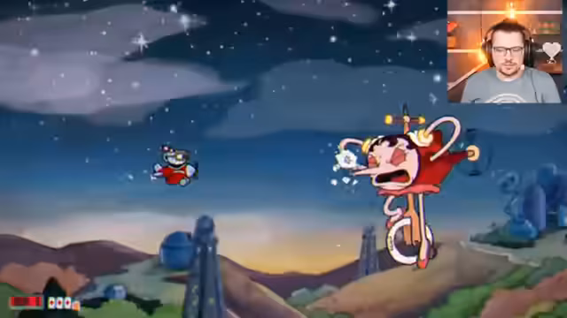04:54:47Als nächster Boss ist Mr. Blue an der Reihe. Der Streamer erwähnt, dass der folgende Boss, Hildegard, für ihn der schwierigste sein könnte. Er stellt eine neue Spielmechanik vor, bei der er ein Flugzeug steuern und durch Level navigieren muss. Während des Kampfes gibt es viel RNG, was den Kampf beeinflusst. Der Streamer kommt mit einem HP in die letzte Phase des Bosskampfes und nutzt eine Special Attack, nachdem er fünf Karten gesammelt hat. Der Verlauf des Kampfes wird als sehr zufällig beschrieben.