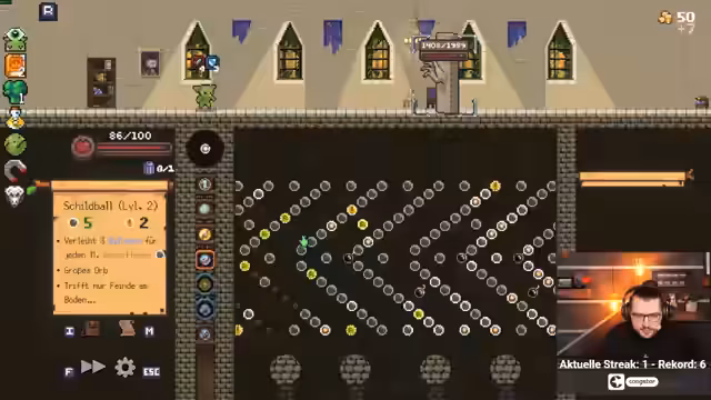 02:30:59Nach dem erfolgreichen Abschluss der Runde, die durch die Pandora Box ermöglicht wurde, wird dies als offizieller, definitiver Durchbruch deklariert. Anschließend wechselt der Stream zu einem anderen Spiel, Peglin. Das Ziel ist es, Peggle-ähnliche Level zu clearen, indem man Steine abräumt und Gegner besiegt. Die Wette, ob der erste Level geschafft wird, wird erfolgreich abgeschlossen, und die Möglichkeit, neue Builds durch die Kombination von Orbs wie Multi-Ball und Reset zu erforschen, wird eröffnet.