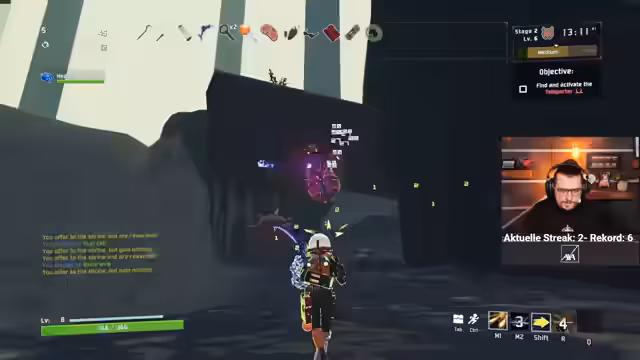 04:04:20Im Stream werden die Mechaniken des Spiels Gambit erläutert. Der Streamer sammelt Geld, um Schreien zu kaufen und damage zu verursachen. Gefährdet wird durch den 'Dorn'-Effekt, bei dem Schaden zurückgegeben wird. Gearbeitet wird mit diversen Items wie der 'Ches Chest' für Geld, 'Soda' für Speed und einer alten 'Chest'. Erste Upgrades umfassen massive Rüstung für 5 Sekunden, Tech Speed durch 'Frenzied' und Geschütze. Funde wie Coins und Upgrades für Bosse werden gesammelt, um den Charakter zu stärken.