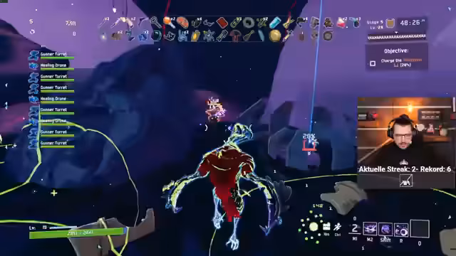 01:16:01Nachdem das Tutorial in 'Bloodshed' erfolgreich absolviert wurde, startet der Streamer in die eigentliche Mission, die Überleben für 20 Minuten erfordert. Die Dynamik des Spiels wird komplexer, da die Map größere Gebiete bietet und mehr Feindtypen auftreten. Upgrades für die Waffen und passive Fähigkeiten wie ein 'Beschwörer Zecken'-Effekt werden eingesetzt, um den Druck der Gegner zu halten. Trotz einer hektischen Schlacht gegen eine Horde von Monstern und Eliten gelingt es, die 20-Minuten-Marke zu erreichen. Dadurch wird die allgemeine Streak auf 6 Spiele erhöht, was als bedeutender Erfolg gewertet wird.