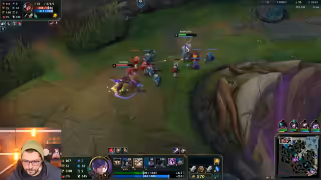 04:57:46Nach einem kritischen Moment im Spiel, in dem das Team des Streamers einen wichtigen Punkt erzielen konnte, wird die aktuelle Situation bewertet. Es wird festgestellt, dass das Team noch weit davon entfernt ist, das Spiel zu drehen, aber der erzielte Punkt war entscheidend. Die Hoffnung liegt nun auf Kog'Maw, der Level 15 erreicht hat und seine Items bekommt, um als Hard Carry zu fungieren, während der Streamer ihn unterstützt. Besondere Vorsicht ist vor Nocturne geboten, der als größter Albtraum für Kog'Maw gilt. Trotzdem gibt es noch offene In-Hips, was die Lage des Teams als nicht gut beschreibt. Der Streamer reflektiert seine eigene Leistung und gibt zu, in League of Legends schlechter geworden zu sein, betont aber, dass das Spiel dennoch Spaß macht. Die Befürchtung ist, dass der Gegner Baron macht und das Spiel leicht beendet, da pro Wave zwei Super-Minions gedrückt werden. Die Hoffnung ruht auf dem baldigen Respawn der Inhibitoren, um die Basis zu verteidigen und vielleicht einen entscheidenden Catch zu erzielen. Die wiederholten Tode von Kog'Maw durch Nocturne und die Stärke von Ashe werden als Hauptursachen für die Schwierigkeiten des Teams identifiziert.