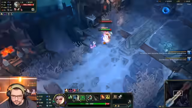 05:33:25Ein detailliertes 1v1-Duell zwischen zwei Spielern in der ARAM-Map wird kommentiert. Besonders die Fähigkeiten-Qualität, der Ultimativen-Einsatz und die Item-Wahl stehen im Fokus des Streams. Der Streamer zeigt sich beeindruckt von der Spielfähigkeit beider Teilnehmer, besonders von einem Spieler, der Barrier einsetzt und sich trotz schwieriger Lage gut schlägt. Auch die allgemeine Qualität der Spiele auf niedrigeren Rängen wird kritisch hinterfragt.