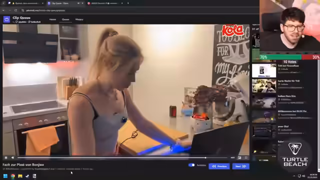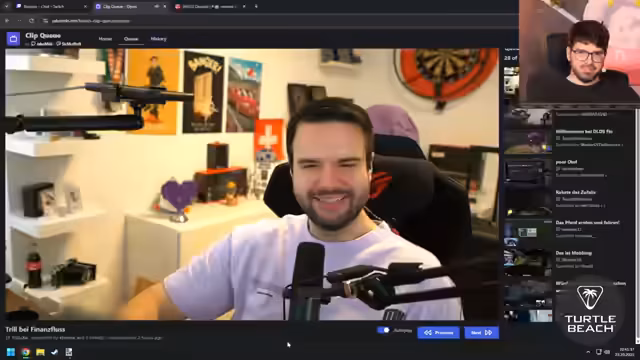 07:24:21Im Stream gab es mehrere Ankündigungen und humorvolle Interaktionen. Es wurde bekannt gegeben, dass Aster am nächsten Tag um 16 Uhr einen Stream auf Bonjwa haben wird, was als 'verdammt früh' für einen Streamer empfunden wurde. Des Weiteren wurde die Idee einer 'Streamer-Villa' diskutiert, in der mehrere Streamer ihre Studios auf verschiedenen Etagen hätten. Eine weitere humorvolle Einlage war die Diskussion über ein vermeintliches 'Mate-Kostüm' für Leon, das er tragen sollte. Der Stream endete mit einer 'Kiste für heute', was das Ende des Hauptprogramms markierte. Eine spontane Runde am Glücksrad führte dazu, dass der Streamer 80 Liegestütze machen musste, was er in kleineren Sets über den Stream verteilen wollte.