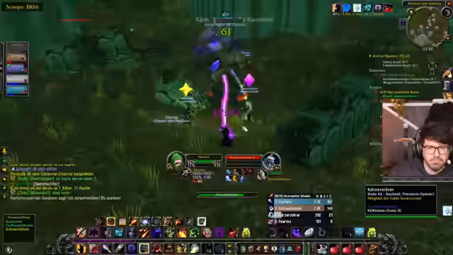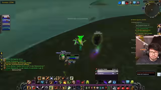 00:01:42Das Gameplay konzentriert sich auf das gemeinsame Leveln und das Erfüllen von Quests in der Feralas-Region für die Allianz. Der Streamer sucht aktiv nach Quest-Gegnern wie Schafen, deren Muschelfleisch für eine Kochquest benötigt wird, und stellt dabei fest, dass er alleine als Hordler keine Quests auf dieser Insel hätte. Es wird eine Unterbrechung für eine Zell-Herstellung angestoßen und das Anvisieren von Quest-Items und Bosskämpfen ist ein zentrales Thema des Gameplays, wobei auch der Fokus auf die Vorbereitung und Buffung der Gruppe gelegt wird.