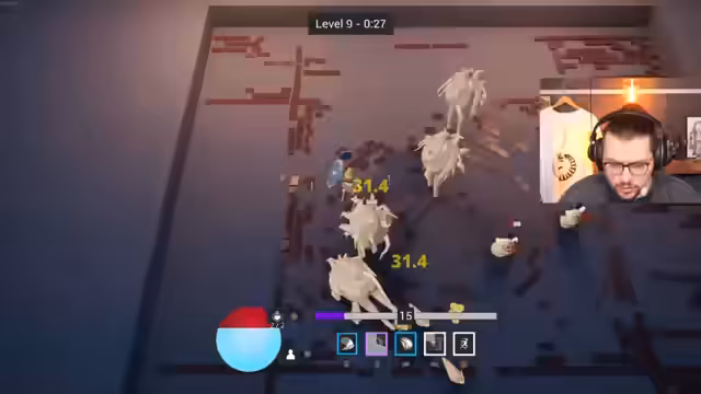 04:03:01Bei einem weiteren Versuch schafft es der Streamer, den Boss auf Level 10 zu besiegen und gewinnt damit die Wette mit dem Chat. Der Streamer stellt fest, dass der Sieg dem Upgrade 'Open Wounds' zu verdanken war und das Spiel eine sehr hohe Difficulty habe. Da ein weiteres Vorankommen nicht möglich war, endet der Spielversuch und er zieht Bilanz.