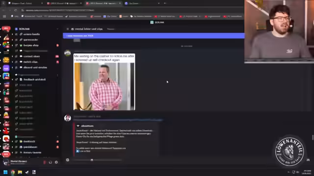 00:45:33Während des Streams wird das Spiel 'Scum' gespielt. Die Gruppe verliert einen Mitspieler, der verblutet, und die Situation wird dadurch chaotisch, dass während des Todes einer Person ein anderer einen Schlüssel findet. Der Streamer analysiert die Fehler in der Gruppe und kommt zu dem Schluss, dass die Verpeiltheit des Anführers die gesamte Gruppe negativ beeinflusst. Er reflektiert, wie sich in der virtuellen Welt ein echter Schaden anrichten kann und stellt fest, dass die Nerven blank liegen und der Druck im Team zunimmt.