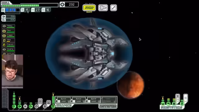02:35:28Während des FTL-Spiels wurden komplexe Taktiken erklärt und angewendet. So wurde die Strategie des 'Boardings' mit Mantis-Crew-Mitgliedern näher beleuchtet. Wichtig war hierbei das Zerstören von Klonstationen, um die gegnerische Crew am Wiederaufstehen zu hindern. Zusätzlich wurde der Umgang mit Energieverteilung, der Einsatz von Laserwaffen und die Bedeutung des Levelns von Crewmitgliedern durch wiederholte Treffer auf bestimmten Schiffssystemen erörtert.