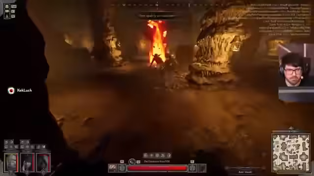 01:47:04Ein intensiver Kampf gegen einen Barbaren steht im Mittelpunkt, bei dem der Streamer seine Taktiken zur Schadensvermeidung und zum konzentrierten Angriff erklärt. Es wird versucht, den Gegner von einem Teammitglied wegzudrängen, was jedoch teilweise misslingt. Der Streamer warnt vor einem Rogue hinter einer Tür und koordiniert mit seinen Teammitgliedern die Verteidigung des Raumes. Die Kämpfe erfordern schnelle Reaktionen und genaue Platzierungen, um den gegnerischen Angriffen zu entgehen.