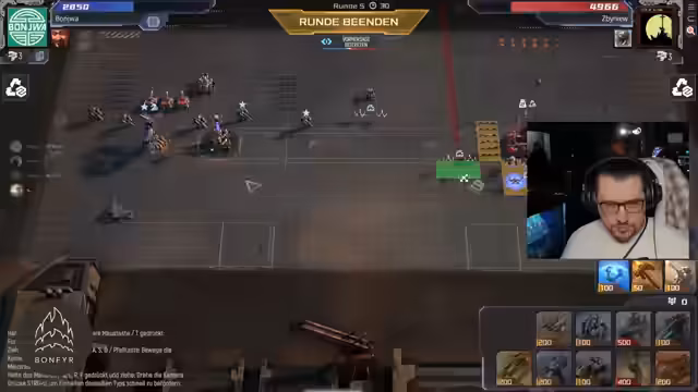 05:57:34In den letzten Runden des Streams ist das Interesse der Community im Chat sichtlich gesunken. Der Streamer bemerkt, dass der Chat 'tot' ist, da sich die Zuschauer auf das Spiel konzentrieren. Er spielt weiter Mecha-Bellum, beschwert sich aber über den Spielverlauf, der 'durchgemacht' und 'größtenteils langweilig' ist. Er kritisiert den Gegner, der seine 'Wand' entfernt, und seine eigene schlechte Performance, bei der er 'kein Anti-Air' und 'keine Sniper' hat, was ihn in Probleme stürzt und zu einem kläglich Verlust führt.