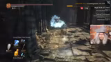 00:42:20Nachdem die Pre-Show beendet ist, beginnt der eigentliche Run. Der Streamer startet als Sorcerer mit einem Fire Gem als Startitem. Er erklärt die Herausforderungen des Magier-Gameplays in Dark Souls 3, insbesondere die neue Manaleiste und die Ashen Flask, die sich den Heilungspool teilt. Die Strategie ist, ein Hybrid-Run zu spielen, bei dem er sowohl Magie als auch ein Schwert einsetzen wird, da reiner Magier auf einem No-Death-Run zu schwach ist. Der erste Boss, Gundyr, wird mit einer Parry-Taktik angegangen.