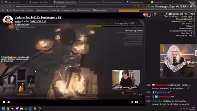 00:15:20Der Stream beginnt mit dem Streamer, der sich als Helga Holzkern vorstellt und seine Zuschauer begrüßt. Er kündigt einen Run im Spiel Dark Souls 3 an, bei dem er versucht, ohne zu sterben尽可能 viele Punkte zu sammeln. Er hat sich gründlich vorbereitet und zeigt eine Miro-Liste mit seinem kompletten Run, der in Chapters eingeteilt ist. Der Streamer ist aufgeregt und gibt an, dass sein Puls seit Streambeginn über 100 liegt. Er plant heute etwa sechs Stunden zu streamen und den Rest des Runs morgen fortzusetzen, falls er durchkommt.