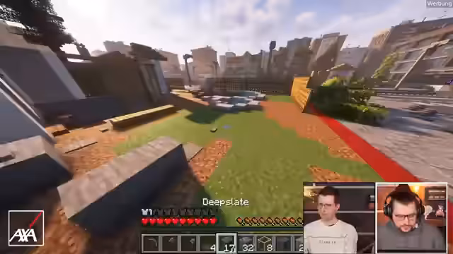 04:16:40Das Meeting findet im Rahmen eines Minecraft-Events mit dem Partner AXA statt. Die Teilnehmer sind in Teams aufgeteilt und erhalten jeweils ein Grundstück mit einem unfertigen Haus. Das Ziel ist es, das Haus so schnell und gut wie möglich fertigzustellen. Dafür können sie im AXA-Baumarkt mit Kristallen, die in der Stadt verteilt sind, Ressourcen kaufen. Das Gebäude ist von Unwettern bedroht, und für Schäden kann eine Versicherung in der Filiale abgeschlossen werden, die die Kosten erstattet. Die Kristalle respawnen kontinuierlich.