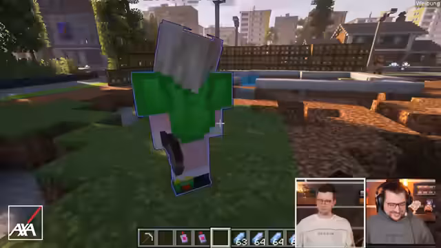 06:59:00Der Bauzustand der Anlage wird kritisiert und als 'Scheiße' bezeichnet. Gleichzeitig versuchen die Teilnehmer, bei AXA einen Studentenrabatt für ihre Anschaffungen zu erhalten. Es kommt zu humorvollen Diskussionen über den Status als Student, was zu einem Rabatt bei der Versicherung führen soll. Trotzdem wird der Bau fortgesetzt und es werden Materialien wie Dirt und Steine für die Flickarbeiten verteilt, während weitere Elemente wie eine Treppe und ein Turm errichtet werden.