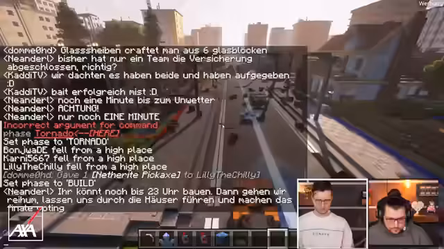 06:44:09Plötzlich schlägt ein Unwetter in Axlertown ein, das zu erheblichen Zerstörungen führt. Ein Meteorit trifft Häuser, einschließlich des Streams, und richtet immensen Schaden an, darunter abgedecktes Dach, zerstörter Garten, ein leerer Pool und verlorene Möbel. Die Teams sind schockiert und versuchen, die Schäden zu bewältigen. Versicherungsansprüche werden geltend gemacht, wobei AXA als Versicherung die Schäden regulieren soll und neue Ressourcen wie Beton für das Dach und Möbel zur Verfügung stellt.