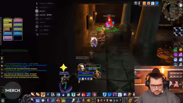 07:53:33Nach Abschluss des Minecraft-Events wechselt der Stream thematisch zu World of Warcraft. Die Streamer organisieren eine Gruppe für einen Prinzessin-Ysabel-Run, wobei sie nach einem vermissten Mitspieler suchen und die Gruppe zusammenstellen. Die Diskussionen drehen sich um die Suche nach einem Schamanen, die Überprüfung der Spiellevel und die Taktik für den Kampf. Gleichzeitig wird der aktuelle Level der Streamer geteilt und es kommt zu allgemeinen Gesprächen über Spielmechaniken, Gildenkommunikation und geplante Aktivitäten.