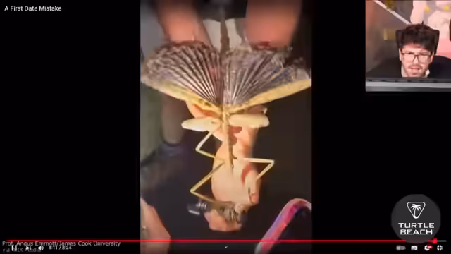 02:29:41Das Bild einer riesigen Gottesanbeterin wird gezeigt, was den Streamer sehr schockiert und dazu bringt, auszurufen, er würde niemals nach Australien reisen. Er äußert seine Angst vor den riesigen Insekten und anderen wilden Tieren, die dort vorkommen, und ist froh, in Deutschland zu sein, wo es keine solchen Tiere gibt.