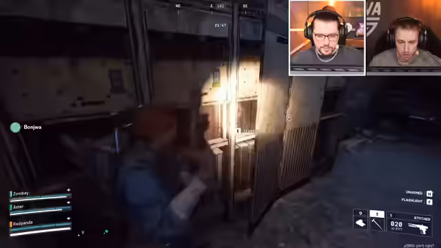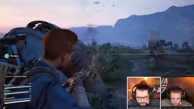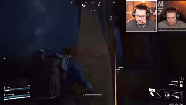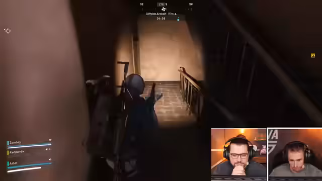 07:20:54Die Spieler treffen auf eine große Drohne und ein anderes Team, das ebenfalls gegen diese kämpft. Sie entscheiden sich für eine Flankierung, um die Situation auszunutzen und kostenlose Treffer zu landen. Nach dem Verteilen von Munition wird die Taktik besprochen, zuerst mit einem Ferro-Schuss das Schild des Gegners zu brechen und dann mit der Rattler weiterzuschießen. Es kommt zu humorvollen und teils derben Anekdoten über Umkleidekabinen im Fußball. Die Gruppe entdeckt, dass ein feindliches Team den Exit ruft und verschanzt sich, um sie abzufangen. Ein unerwarteter Angriff einer Raketen-Drohne zwingt die Spieler jedoch, in ein Gebäude zu flüchten und sich dort zu verteidigen. Sie konzentrieren sich darauf, die Drohne durch gezielte Schüsse auf die Rotorblätter zu schwächen und gleichzeitig ihre Position zu halten.