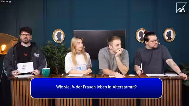 03:44:02Gegen Ende des Streams kündigt der Streamer ein Quiz-Thema im Zusammenhang mit Gender Pay Gap und Gender Health Gap an, das in Zusammenarbeit mit AXA stattfindet. Mit einem Preisgeld von etwa 500 Euro und Teilnehmern wie Maurice, Matteo und Jen wird die Veranstaltung als interaktives Highlight angekündigt. Der Übergang vom Gameplay zum Quiz-Event markiert eine interessante Abwechslung im Stream-Ablauf.