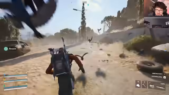 01:31:17Die Gruppe entscheidet sich, die Quest „Antike Festung“ anzugehen, da sie dort gute blaue Waffen erhalten können. Es wird über die Suche nach Blueprints für Schalldämpfer gesprochen, wobei die Spieler feststellen, dass diese oft zufällig gefunden werden. Ein Spieler berichtet von einem lila Waffen-Mod-Blueprint, den er nach dem Töten einer Bastion gefunden hat. Die Spieler tauschen sich über ihre Erfahrungen mit verschiedenen Gegnertypen aus, wie dem „Leaper“ (Spinnentyp), und diskutieren über das Leveln ihres Huhns und das Sammeln von Obst für Quests. Die Suche nach Batterien für einen Snitch-Scanner führt zu einer Begegnung mit einem Turret und weiteren Gegnern.