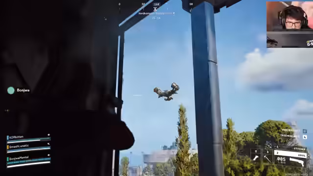 06:35:12Die Spieler befinden sich in einem intensiven Kampf, bei dem sie sich auf die Rotoren einer Drohne konzentrieren, da diese nicht gepanzert sind. Nach erfolgreicher Zerstörung der Drohne geraten sie jedoch unter Beschuss durch andere Spieler. Ein Teammitglied wird dabei getötet, während versucht wird, sich zurückzuziehen und die Gegner zu markieren. Die Situation eskaliert, als weitere Gegner auftauchen und die Gruppe gezwungen ist, sich zu verteidigen. Trotz der Schwierigkeiten gelingt es, einen Gegner zu eliminieren und sich vorübergehend in Sicherheit zu bringen, um die Lage neu zu bewerten und die verbleibenden Feinde zu orten. Die Kommunikation über die Positionen der Gegner und die eigene Munitionslage ist dabei entscheidend für das Überleben.