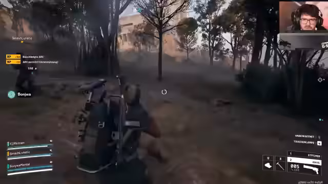 06:12:13Die zweite Runde Arc Raiders beginnt, und die Spieler setzen ihre Erkundung fort. Es wird über den Proximity-Chat im Spiel gesprochen und wie dieser im Solo-Modus oft zu freundlichen Interaktionen führt, während im Trio-Modus eher auf Kampf gesetzt wird. Während des Lootens und Kämpfens kommt es zu humorvollen Dialogen, unter anderem über Franzis rote Haare und die Ähnlichkeit mit Aloy aus Horizon Zero Dawn. Auch über die Halloween-Party und die Beobachtung der Anwesenden wird gescherzt. Die Spieler entdecken verschiedene Loot-Bereiche und diskutieren über die besten Strategien, um Gegner zu umgehen oder zu bekämpfen. Die Interaktionen sind von einer lockeren und freundlichen Atmosphäre geprägt.