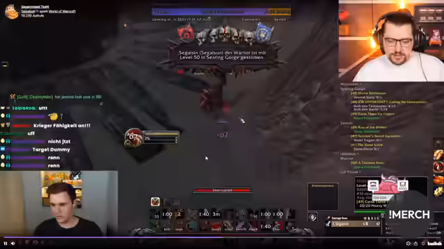 00:30:17Die aktuelle Erfahrungspunkte-Situation des verstorbenen Spielers wird analysiert. Obwohl der Charakter kurz vor Level 51 stand, fehlten ihm nur wenige Quests, um einen sicheren Level-Aufstieg zu erreichen. Trotz des Rückschlags entschied sich der Spieler, direkt wieder in den Kampf zu gehen. Dies wird als beispielhafte Motivation und Zielstrebigkeit gewertet, auch wenn es mit einem Risiko verbunden ist.