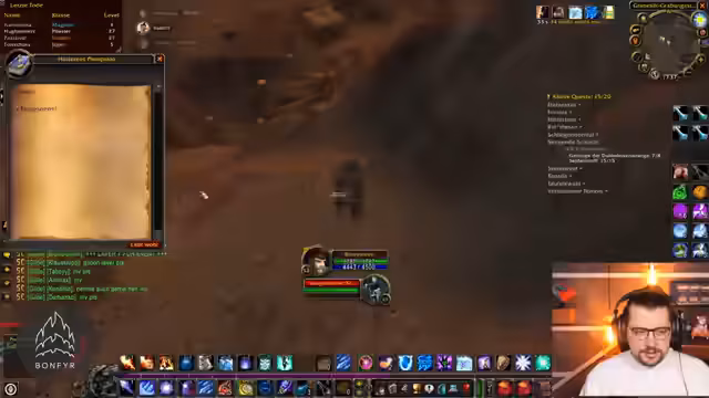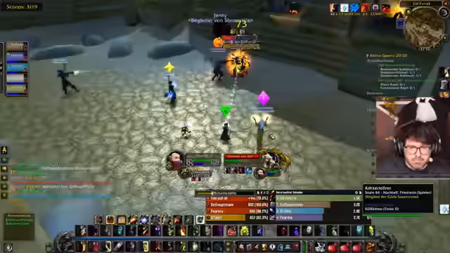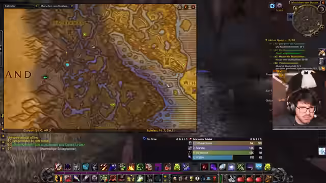 05:49:25Der Stream beginnt mit einem schwierigen Startgebiet in WoW Classic, wo der Spieler sich in der Nachtelfen-Zone mit einem Bob-Tank durchkämpft und Herausforderungen bei der Koordination mit der Gilde erlebt. Es werden häufig Todesfälle von Gildenmitgliedern erwähnt, die die Stimmung belasten, insbesondere da mehrere Charaktere wie Maluna, T-Kex und Vlesk versterben. Der Spieler reflektiert über die Strapazen des Levelns auf Level 53 und äußert Sorgen, die Herausforderungen alleine zu bewältigen, während er zwischen Quests und Gruppenaktivitäten wechselt.