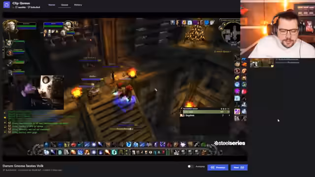 00:16:35Der Stream wird mit einer herzlichen Begrüßung für den Sonntag eröffnet. Es wird Motivation für den heutigen Gaming-Grind ausgedrückt und auf einen Clip eingegangen, der einen spektakulären Tod in Hardcore-World of Warcraft zeigt. Die Community wird aktiviert, indem nach Meinungen zum Clip gefragt wird und eine Diskussion über die Geschehnisse angeregt.