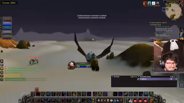 12:30:16Es geht um die weitere Planung der Questabgaben in Danasos und die längere Flugdauer dorthin. Der Streamer erwähnt, dass ein Flug von der aktuellen Position die längste in WoW sein könnte und das für die Erfahrung einmalig notwendig ist. Die Diskussion dreht sich um Alternativen wie das Bitten eines Magiers um ein Portal, was aber nicht möglich ist. Konkret geht es um die Quest 'Tiara of the Deep', die im Marschland von Daswoller abgegeben werden muss, und die damit verbundenen Herausforderungen und Mob-Konfrontationen. Dabei wird auch über die Gefahr durch Horde-Basen und Elite-Mobs wie einen hochstufigen Eater-High gesprochen, der patrouilliert.