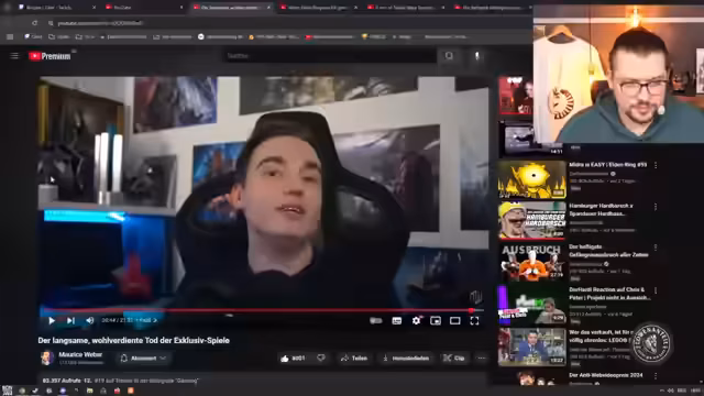 00:30:59Es wird angekündigt, dass auf ein Video von Maurice Weber über das Sterben von Exklusivtiteln reagiert wird. Der Streamer war nie ein Fan von Exklusivtiteln und ist gespannt auf Maurice' Meinung. Microsofts Werbekampagne, die besagt, dass alles eine Xbox sein kann, wird angesprochen, und die Idee, dass dies durch Streaming gelöst werden könnte. Es wird jedoch das Problem des schlechten Internets in Deutschland erwähnt. Der Streamer ist kein Fan von künstlicher Verknappung durch Exklusivität und findet, dass Spieleentwickler möchten, dass ihr Werk ein möglichst breites Publikum erreicht.