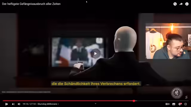 01:59:24Es wird ein Video von Simply Sismos aus dem Jahr 2018 gezeigt, das den Ausbruch eines Häftlings aus einem Hochsicherheitsgefängnis in Frankreich thematisiert. Die Aufbereitung des Videos wird als "insane geil" bezeichnet. Der Häftling, Redouin Faid, war in zahlreiche Raubüberfälle verwickelt und bereits aus einem anderen Gefängnis ausgebrochen. Das Video zeigt, wie er von zwei Männern, die sich als Flugschüler ausgeben, mit einem Hubschrauber befreit wird. Der Fluglehrer wird gezwungen, unter Androhung von Gewalt gegen seine Familie, den Helikopter zu steuern. Im Gefängnis selbst ahnt der Bruder des Häftlings nichts von dem bevorstehenden Ausbruch. Die Videos von Simply Sismos werden als sehr gut aufgebaut und aufwendig gelobt. Es wird spekuliert, ob die Geschichte real ist, was aber bestätigt wird. Die Kindheit des Häftlings in einer Vorstadt von Paris und seine frühen Diebstähle werden thematisiert, ebenso wie sein Interesse an Action-Filmen, die seine Verbrechen inspirierten. Er überfällt Geldtransporter und lebt sein Leben wie ein Filmcharakter. Die Videos von Simply Sismos werden als sehr gut aufgebaut und aufwendig gelobt.