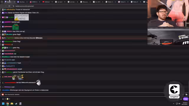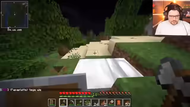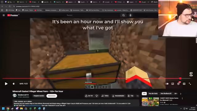 08:34:46Der Streamer kämpft mit dem Bau einer Villager-Farm und den damit verbundenen komplexen Mechaniken. Es werden Trichter und Schienen benötigt, und die Platzierung des Komposters sorgt für Verwirrung. Während des Baus gerät der Hund des Streamers in Gefahr, da er von Mobs angegriffen wird. Die Community im Chat gibt Ratschläge und teilt Informationen über andere Streamer und Projekte, wie Basti's Stream und ein Gloom, der gefunden wurde. Die Streamer diskutieren auch über die Reparatur von Gegenständen mit Mending-Verzauberung. Die Schwierigkeiten beim Bau der Farm und die Rettung des Hundes sorgen für eine angespannte, aber auch humorvolle Atmosphäre. Am Ende gelingt es, die Farm zu verbinden, obwohl es einige Rückschläge gab.
