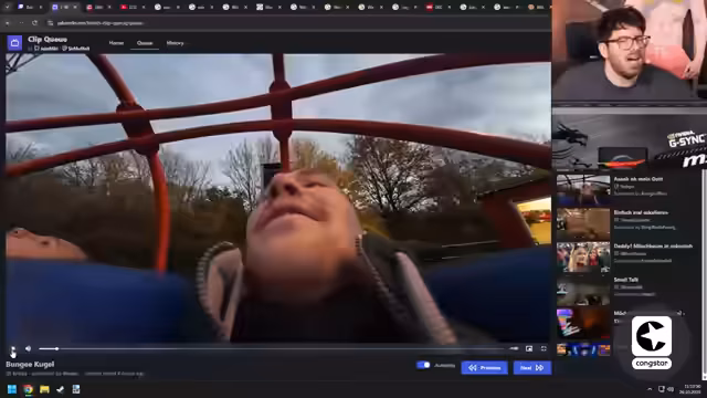 10:22:04Der Streamer beendet die Clip-Session und kündigt an, die neueste Daily Dose anzusehen, gefolgt von einer Gaming-Session in 'Mars First Logistics'. Während der Daily Dose kommt es zu einer Diskussion über die hypothetische Rettung eines fallenden Glases mit einem Besenstiel, was der Streamer humorvoll versucht nachzustellen. Dabei entdeckt er, dass kein Besen im Studio ist und greift stattdessen zu einem Regenschirm, um das Prinzip des Fangens zu demonstrieren. Er stellt fest, dass ein Plastikglas besser wäre, um keine Sauerei zu verursachen, und scheitert letztendlich an der praktischen Umsetzung, was zu amüsanten Selbstreflexionen über seine Ungelenkigkeit führt. Die Zuschauer sind erleichtert, dass er sich dabei nicht verletzt hat.