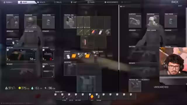 00:37:26Der Streamer vertieft die taktischen Aspekte des Spiels. Er zeigt, wie man die Rüstung anderer Spieler inspizieren kann, um deren Schutzklasse (Armor Class) zu bestimmen. Es wird erklärt, wie die Durchschlagskraft der Munition (Armor Penetration) funktioniert und dass gezielte Kopfschüsse immer effektiver sind als das Beschießen des Rumpfes, insbesondere bei Scavs. Darüber hinaus wird die Mechanik des "Vaulting" eingeführt, die es ermöglicht, über Hindernisse zu springen, wenn der Sprung im richtigen Moment ausgeführt wird.