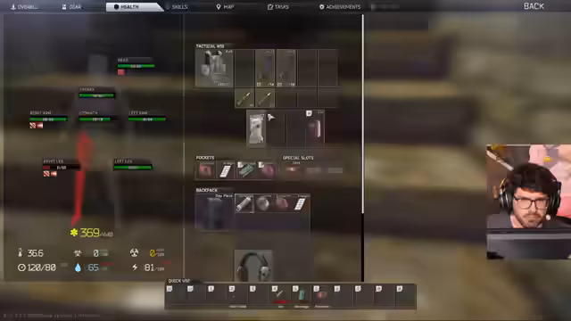 00:11:57Der Streamer geht detailliert auf die Ausrüstung und die Kampfmechaniken ein. Es werden die verschiedenen Rüstungstiers (T1-T6) erklärt und wie man eine bessere Rüstung ausrüstet. Die Haltbarkeit von Waffen und die Bedeutung der Munition werden diskutiert. Es wird gezeigt, wie man Magazine nachlädt und wie das Gewicht des Charakters die Bewegung und Lautstärke beeinflusst. Ein verletzter Spieler muss sich mit Medikamenten heilen, und es wird die Unterscheidung zwischen leichten und schweren Blutungen sowie die Verwendung von Bandagen erläutert.