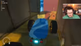 00:32:46Das zweite Spiel, Hand Simulator, wird gestartet und bringt eine völlig neue, sehr physikalische und unpraktische Steuerung mit sich. Der Streamer hat Schwierigkeiten, die Hand zu bedienen, eine Waffe zu laden und zu zielen, was zu extrem komischen und desorientierenden Szenen führt. Viele Angriffe werden aus Versehen ausgeführt und die Steuerung der virtuellen Hände erweist sich als größere Herausforderung als der Gegner selbst.