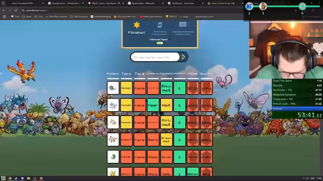 07:23:05Nachdem GeoGuessr abgeschlossen ist, widmet sich der Streamer dem Wikipedia-Speedrun von 'Twitch' zu 'Bananenbrot'. Der Prozess gestaltet sich schwierig, da die direkte Verbindung nicht offensichtlich ist. Er navigiert über Kategorien wie 'Ernährung' und 'Obst', bis er letztendlich 'Bananenbrot' findet und das Spiel gewinnt. Anschließend wird 'TimeGuessr' über 35.000 Punkte ebenfalls erfolgreich gemeistert. Zum Abschluss spielen die Teilnehmer ein perfekter Kreis-Malen, wobei der Streamer im zweiten Versuch die 95%-Genauigkeit erreicht, und Pokedle, bei dem er nach längerem Raten das Pokémon 'Porenta' identifiziert. Das Battle ist damit abgeschlossen.