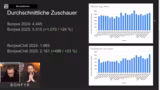 02:28:40Der Stream startet mit einer positiven Bilanz des vergangenen Jahres. Die durchschnittliche Zuschauerzahl auf Bonjwa ist um 24% gestiegen, was einem Wachstum von 1070 Zuschauern entspricht. Auf dem Chill-Kanal wird ähnliches Wachstum von 23% verzeichnet. Neben den Zuschauerzahlen werden auch andere Kennnisse analysiert, wie die gestreamte Zeit, die Chat-Aktivität und die Anzahl der erstellten Clips. Während die Chatnachrichten um 17% zugenommen haben, zeigt sich ein drastischer Rückgang bei den erstellten Clips von 66%, was auf eine veränderte, passivere Konsumhaltung hindeutet.